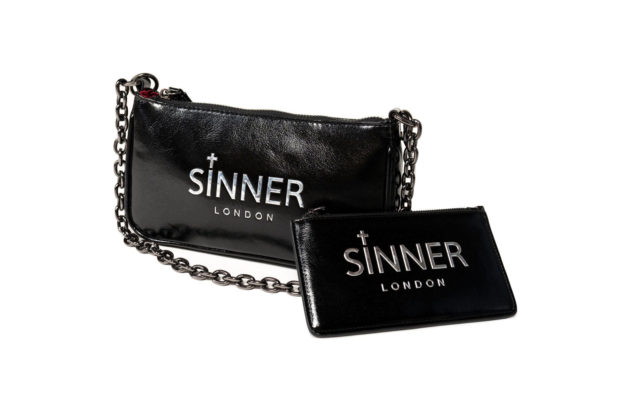 Glossy black exterior with metallic silver logo.