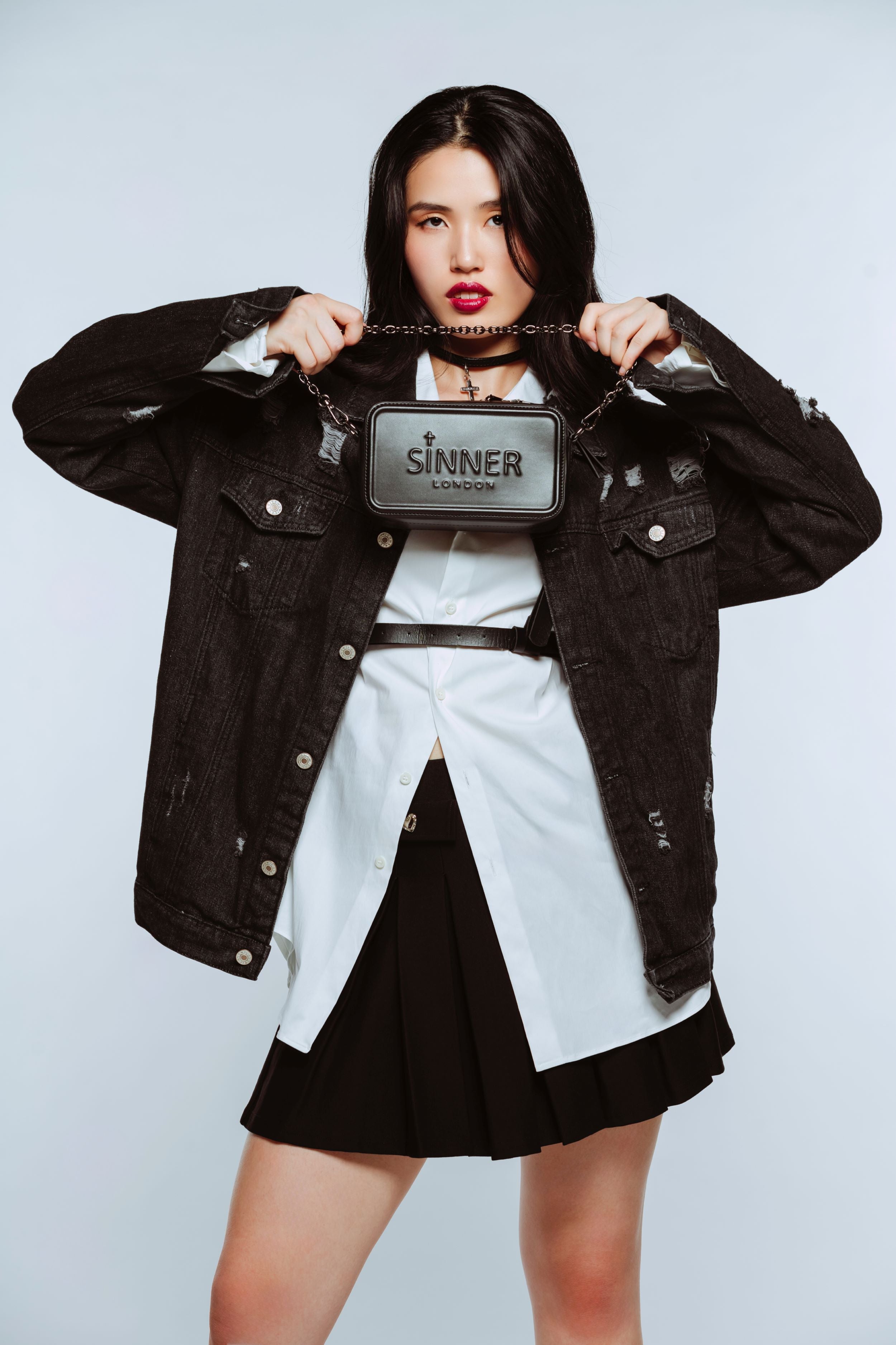 Detachable chain + adjustable crossbody strap.