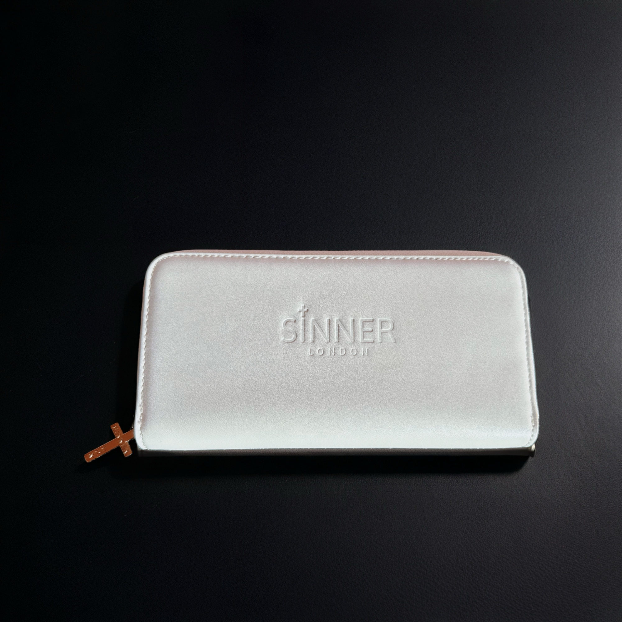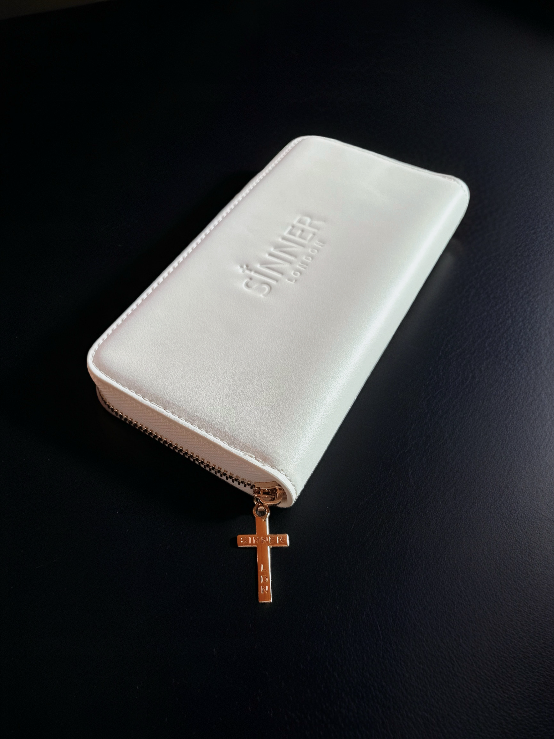 Material: White vegan leather with a luxurious red lining and our signature logo pattern.
